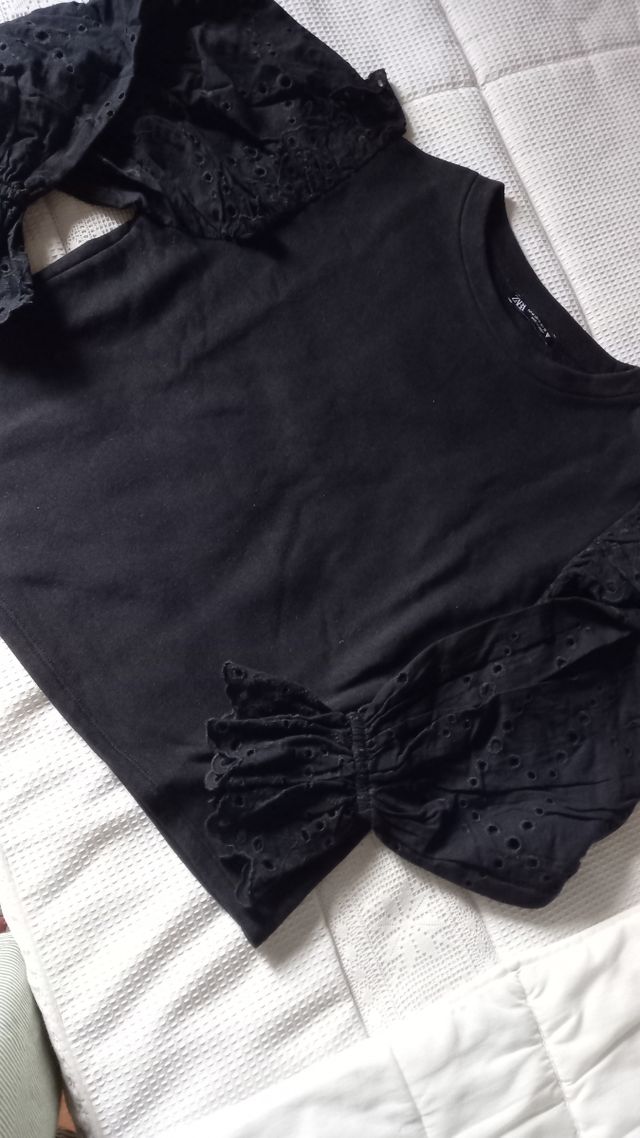 Sudadera negra con mangas de tela acabadas en volante.Talla M.