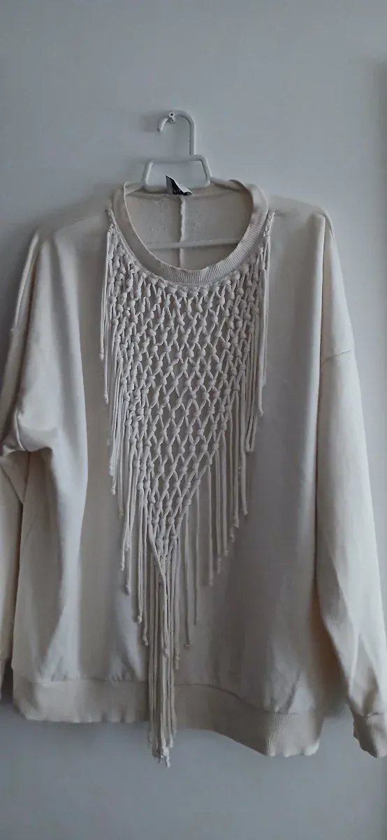 Sudadera Zara Blanca con Macramé