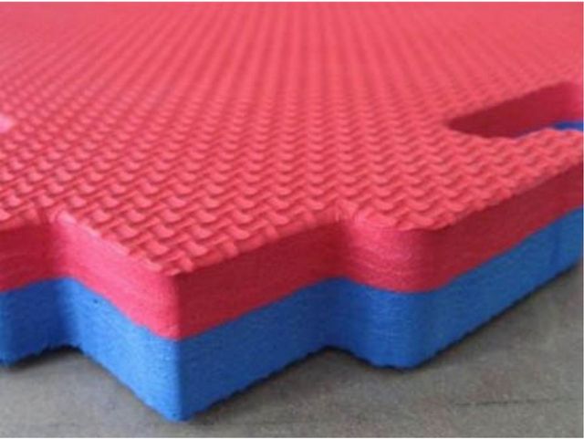 Suelo acolchado de goma EVA, ideal para actividades deportivas o zonas de juego. - Color: Rojo y azul. - Medidas: 1x1 metro. - tengo unas 12 piezas