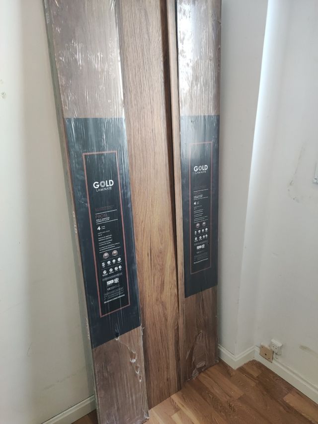 Detalles del productodos paquetes de suelo laminado más dos lamas sobrantes con unión de juntas, total 4 metros cuadrados, ideal para un baño o cocina pequeños,precio a convenir. Medidas del producto