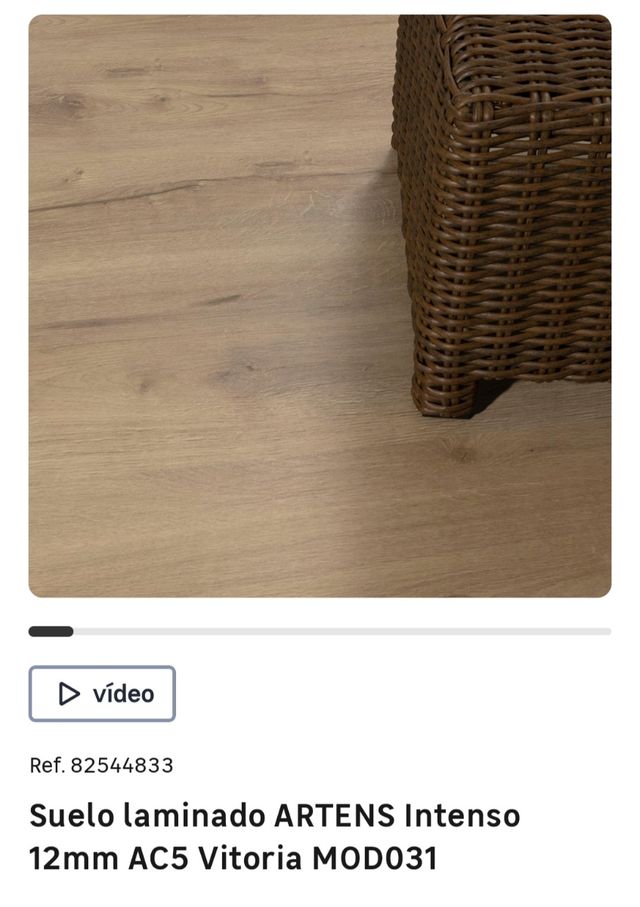 Detalles del producto10 cajas de suelo laminado Artens intenso 12 mm AC5 (15 m²). Están en su envalaje original, ya que me han sobrado y se me han pasado los 100 días para devolverlas. Ideal para una habitación. Tiene un grueso de 12 mm y categoría AC5. Medidas del producto