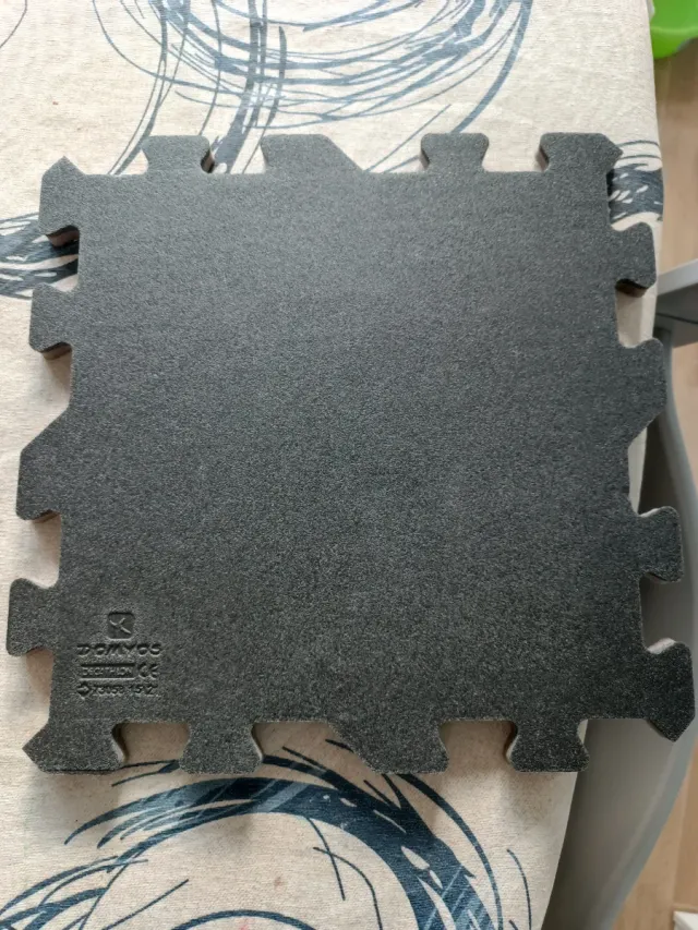 Suelo puzzle de la marca Domyos, ideal para proteger superficies. 9 PIEZAS. - Color gris oscuro. - Diseño entrelazado para fácil montaje. - Material de espuma. - Marca: Domyos.