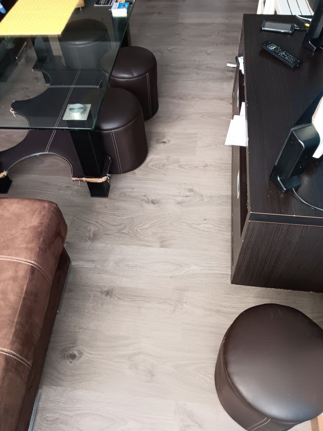 Detalles del productoSuelo laminado roble Skuba Authentic Momma Oak color gris.