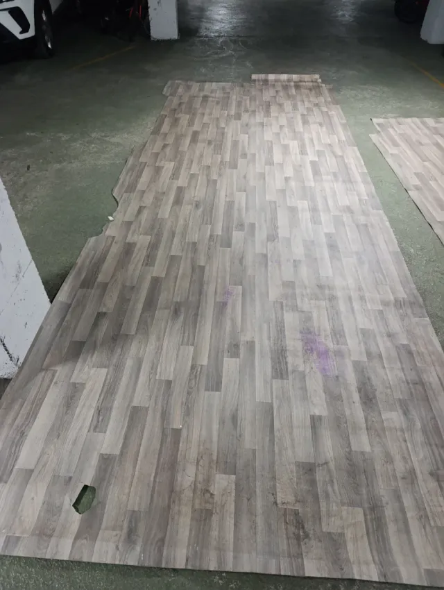 Detalles del productoRollo de suelo vinílico con acabado que imita la madera del parquet.sintasol.lo que se ve lila no es mancha es lap foto.
