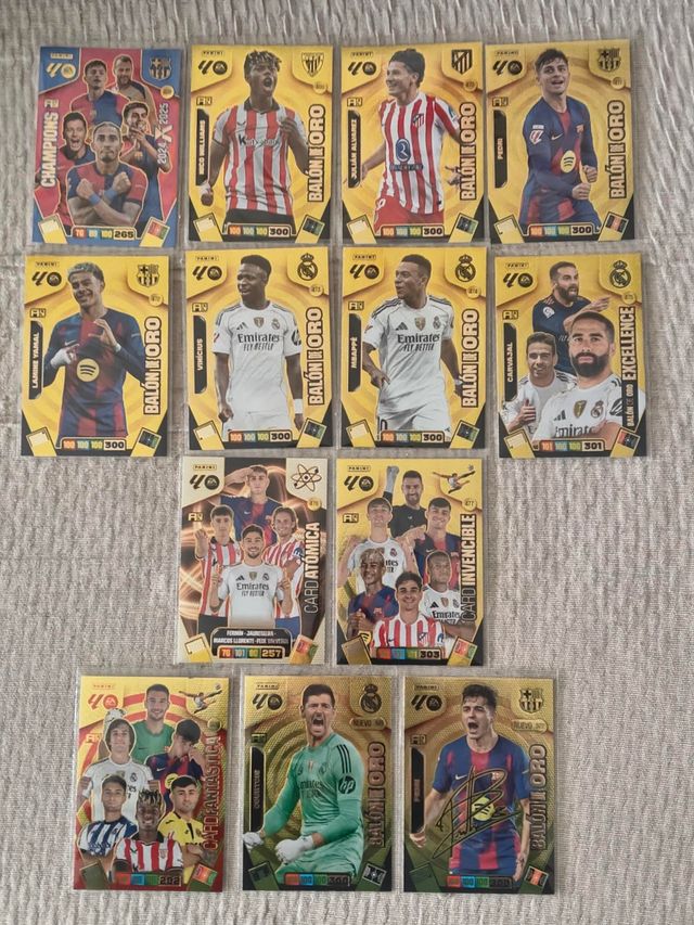 Detalles del productoMínima compra 3 cromos. No negocio precio. 9 Balones de oro y 4 Card Especiales. Son: 468) Card Champions (5,50), (469) Nico Willians (4€),(470) J. Álvarez (5,50€),(471) Pedri (5,50€);(472) L. Yamal (5.50€),(473) Vinicius (5.50€). (474) Mbappé (5,50€), (475) Excellence Carvajal; (5,50€); (476) Card Atómica (5.50); (477) Card Invencible;(5,50€), (520) Card Fantástica (7.50€); (521) N,Balón Oro Courtois (7.50€); (522)N. B.oro Firmado Pedri:(9€). Se personaliza anuncio para su compra. Pago y envío por Wallapod. O Paq. Estandar Correos con seguim. (+4,50). Formas de pago: Bizum, Paypal amigo, (BBVA). Entrega en Fuenlabrada o Las Rozas