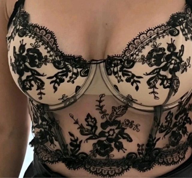 Sujetador encaje floral beige y negro