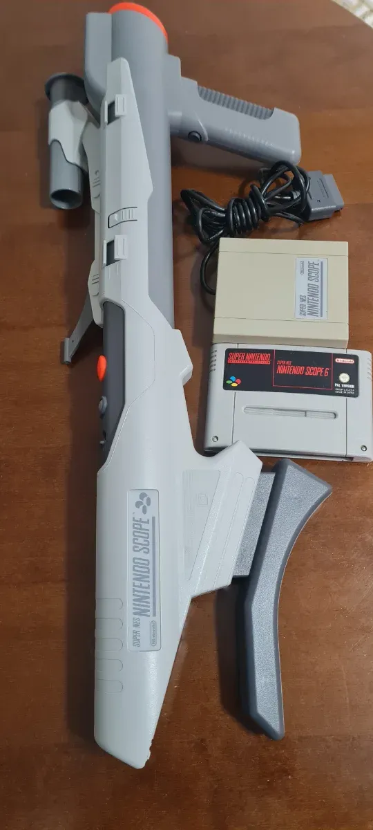 Accesorios para Super Nintendo. - Pistola de luz Nintendo Scope 6. - Cartucho de juego. - Cable de conexión. - Esta completo