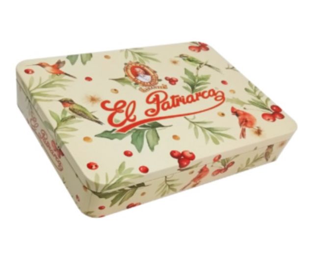 Detalles del productoLata metálica de surtido navideño de El Patriarca. Contiene 10 variedades de productos (Mantecados de Canela, Limón, Coco, Chocolate, Roscos de Almendra, Mantecados bombón, Mantecados Bombón Crujiente, Alfajores de Almendra, Hojaldre y Chocoroscos).