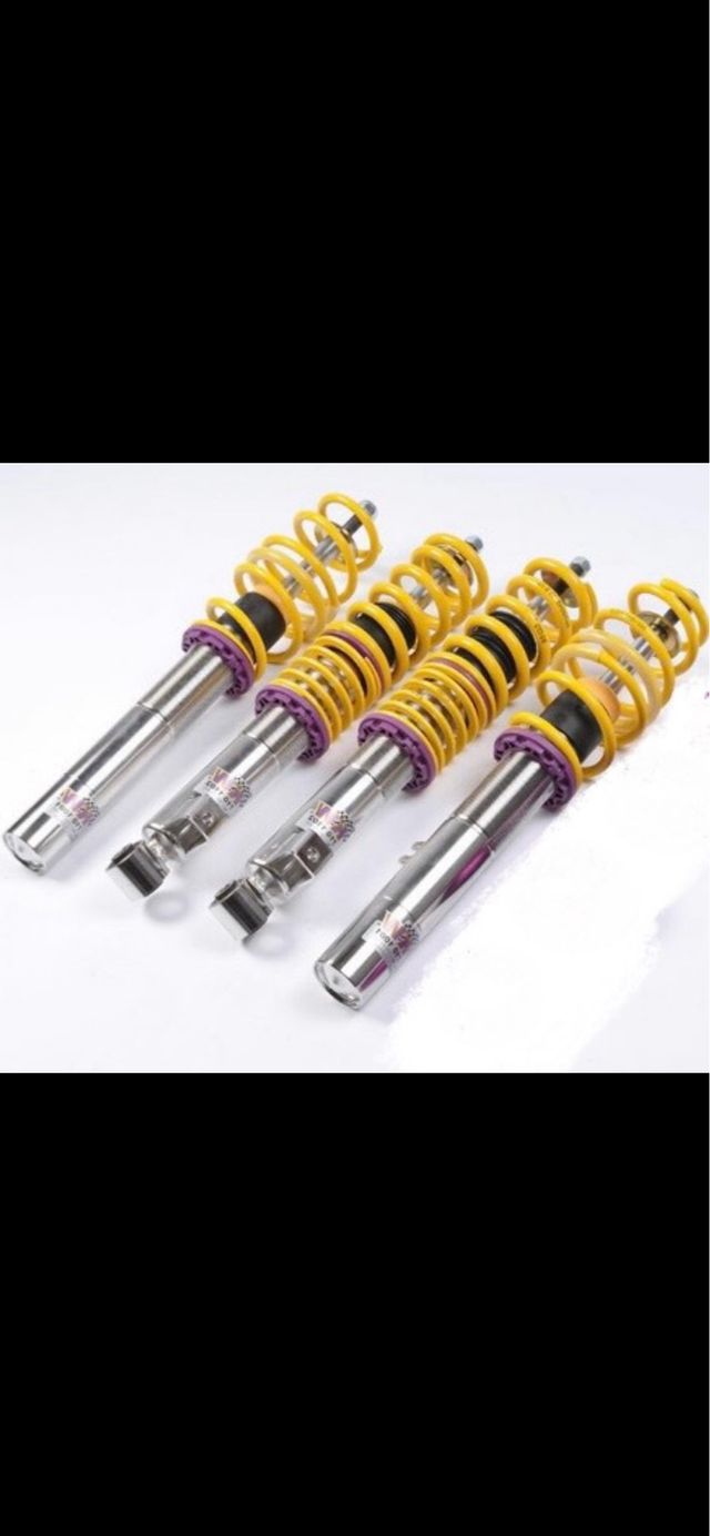 Suspensión KW V1. Iba montada en un Seat Ibiza 6l. No se si es valida para otros modelos. - Muelles de color amarillo. - Ajuste de altura. - Componentes de acero inoxidable.