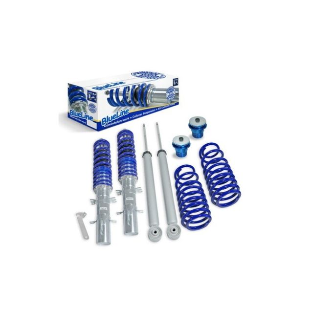 Los kits de suspensión BlueLine coilover son componentes de suspensión específicos para automóviles de alto nivel, con una reducción en el frente de los ejes entre 25 y 60 mm y en la relación entre 20 y 40 mm. Los kits tienen una gran absorción de fuerza transversal. Altura ajustable Frontal 25-60mm / Trasera 20-40mm.
