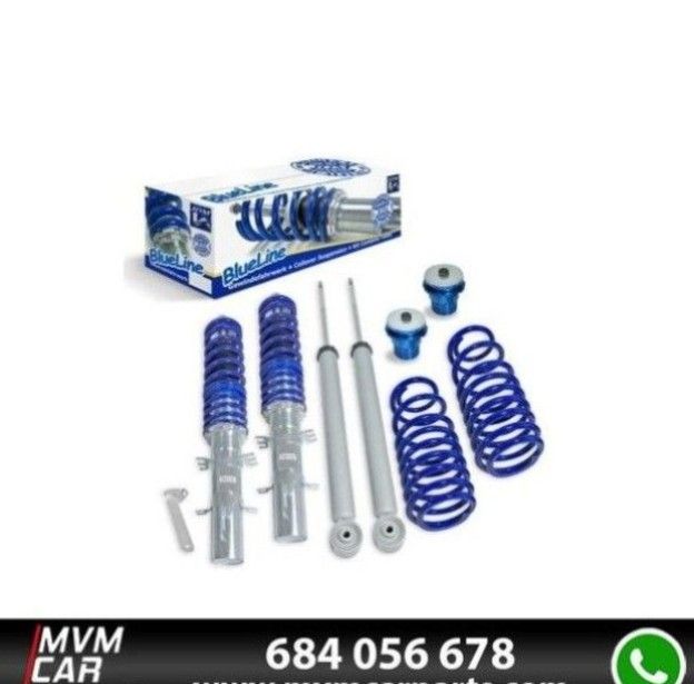 Los kits de suspensión BlueLine coilover son componentes de suspensión específicos para automóviles de alto nivel, con una reducción en el frente de los ejes entre 25 y 60 mm y en la relación entre 20 y 40 mm. Los kits tienen una gran absorción de fuerza transversal. Altura ajustable Frontal 25-60mm / Trasera 20-40mm.