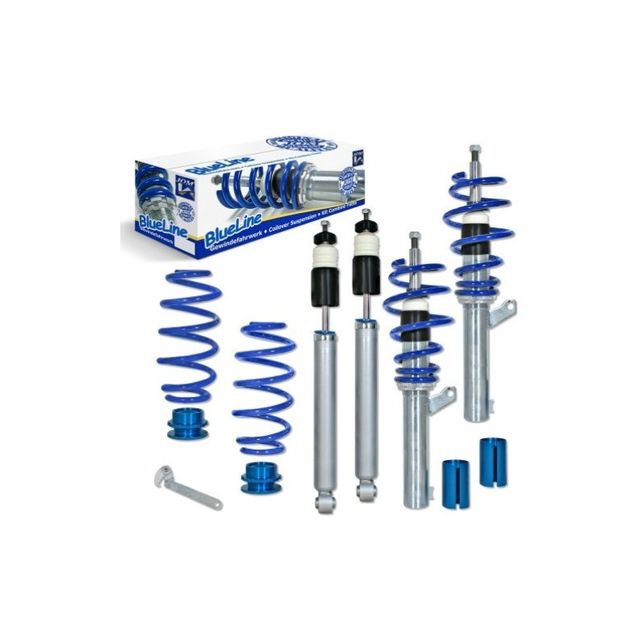 Los kits de suspensión BlueLine coilover son componentes de suspensión específicos para automóviles de alto nivel, con una reducción en el frente de los ejes entre 20 y 60 mm y en la relación entre 30 y 60 mm. Los kits tienen una gran absorción de fuerza transversal. Altura ajustable Frontal 20-60mm / Trasera 30-60mm