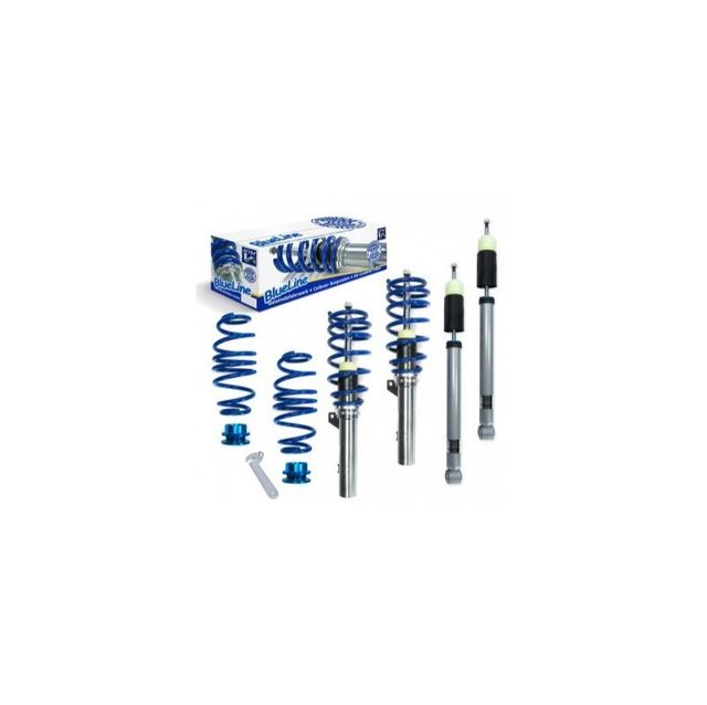Los kits de suspensión BlueLine coilover son componentes de suspensión específicos para automóviles de alto nivel, con una reducción en el frente de los ejes entre 35 y 65 mm y en la relación entre 40 y 65 mm. Los kits tienen una gran absorción de fuerza transversal. Altura ajustable Frontal 35-65mm / Trasera 40-65mm