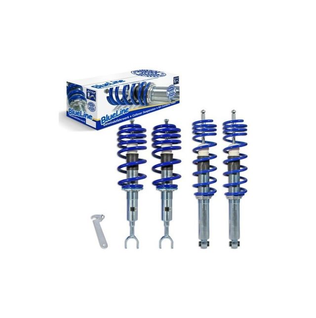 Los kits de suspensión BlueLine coilover son componentes de suspensión específicos para automóviles de alto nivel, con una reducción en el frente de los ejes entre 30 y 60 mm y en la relación entre 40 y 60 mm. Los kits tienen una gran absorción de fuerza transversal. Altura ajustable Frontal 30-60mm / Trasera 40-60mm.