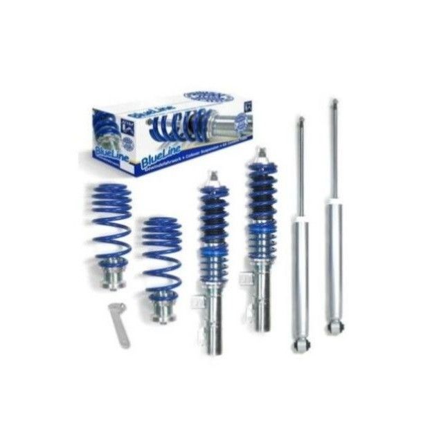 Los kits de suspensión BlueLine coilover son componentes de suspensión específicos para automóviles de alto nivel, con una reducción en el frente de los ejes entre 20 y 55 mm y en la relación entre 30 y 50 mm. Los kits tienen una gran absorción de fuerza transversal. Altura ajustable Frontal 20-55mm / Trasera 30-50mm.