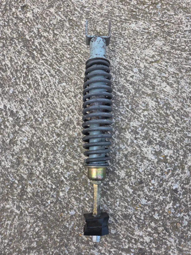 Suspensión trasera para Vespa 200. - Amortiguador con muelle. - Soporte superior en forma de U. - Goma inferior de protección.