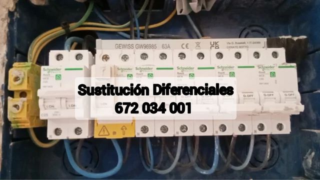 Detalles del productoPanel eléctrico con varios interruptores automáticos y diferenciales.