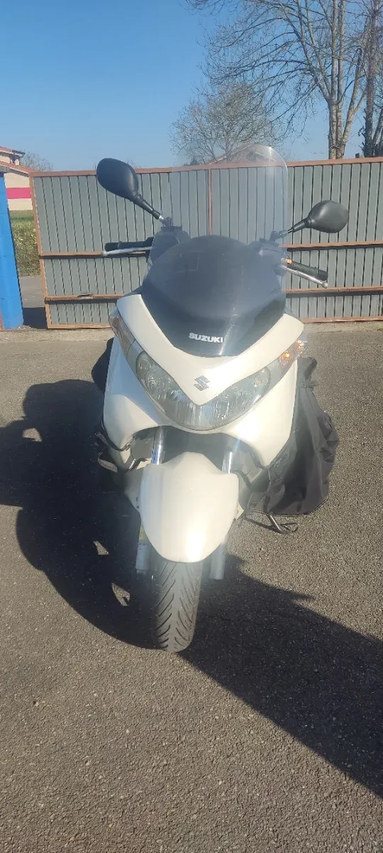 Detalles del productoMaxi scooter Suzuki Burgman de 200cc en color blanco. Ideal para desplazamientos urbanos y rutas.