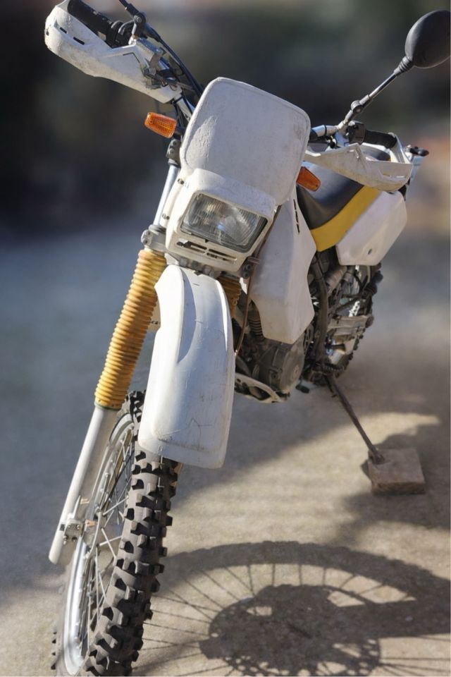 Detalles del productoMoto Suzuki DR 350 SEX en color blanco y amarillo. Ideal para caminos y senderos.