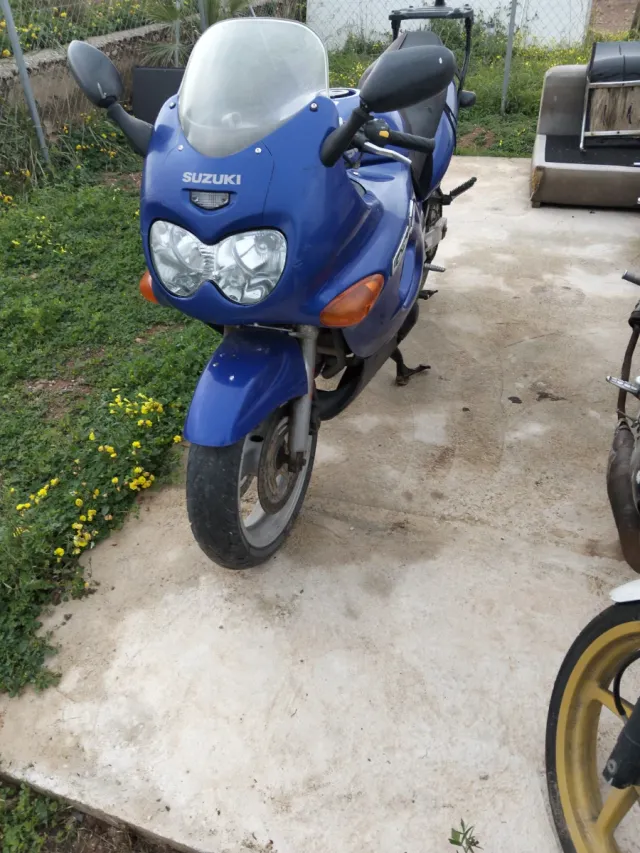 Motocicleta Suzuki GSXF de color azul. - Estilo deportivo. - Transmisión manual.