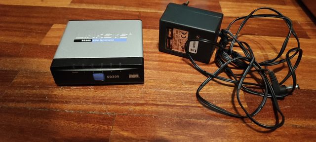 Switch de 5 puertos Linksys SD205, funciona perfectamente. Incluye el alimentador