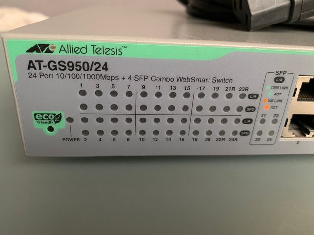 Modelo AT-GS950/24 en perfecto estado, reseteado a valores de fábrica. Slots para 4 SPFs 10/100/1000 gestionable