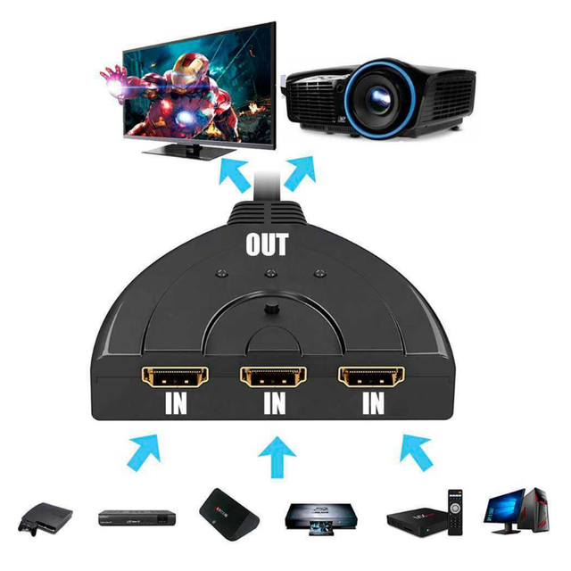 Detalles del productoSWITCH HDMI 3 IN EN 1 OUT. Conecte hasta 3 dispositivos HDMI a un único puerto HDMI. Ideal para televisores con pocos puertos libres HDMI. El conmutador puede cambiar de una manera sencilla entre las diferentes entradas, simplemente presione el botón para cambiar de puerto. Soporte de salida HDMI 2.0 y 2.2 con HDCP, Video 4K (3840 x 2160). Compatible con las versiones anteriores de HDMI estándar. Añademe a tus favoritos, ofertas puntuales todos los dias. Compralo ahora o te arrepentiras. Consultas por whatsapp 24H al 608332120. Ofrecemos Portes muy económicos a través de Correos Express a cualquier lugar de España en 48/72 hrs.