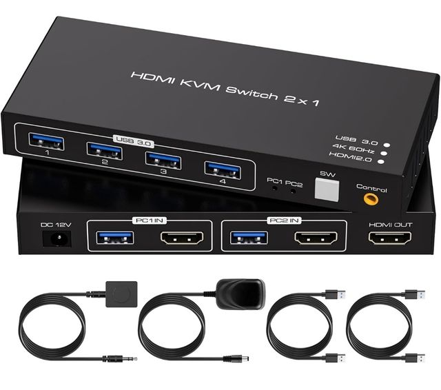 Detalles del productoHDMI KVM Switch 2 PC 1 Monitor 4K60Hz USB 3.0 KVM Switches para 2 Ordenadores Compartir 1 Monitor y 4 Dispositivos USB 3.0 Soporta Controlador de Escritorio Incluye Adaptador y 2 Cables USB3.0