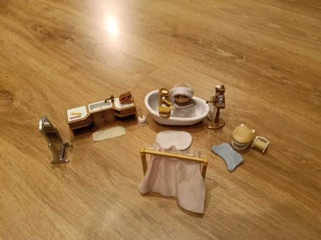 Detalles del productoConjunto de baño de Sylvanian Families. Incluye figuras y accesorios para crear escenas.