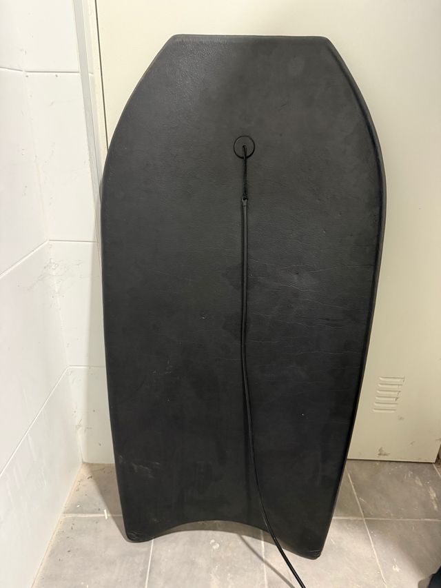 Tabla de bodyboard en color negro, lista para disfrutar del mar. - Material resistente. - Incluye leash (cuerda de sujeción).