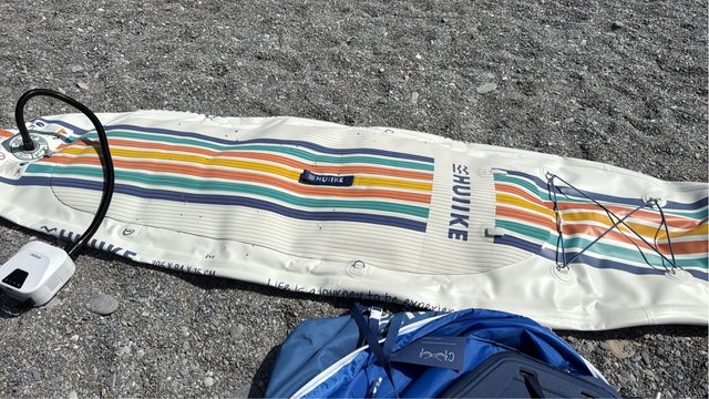 Detalles del productoTabla de paddle surf inflable de la marca HUIKE, con un diseño de rayas multicolor muy llamativo. Ideal para disfrutar del agua.