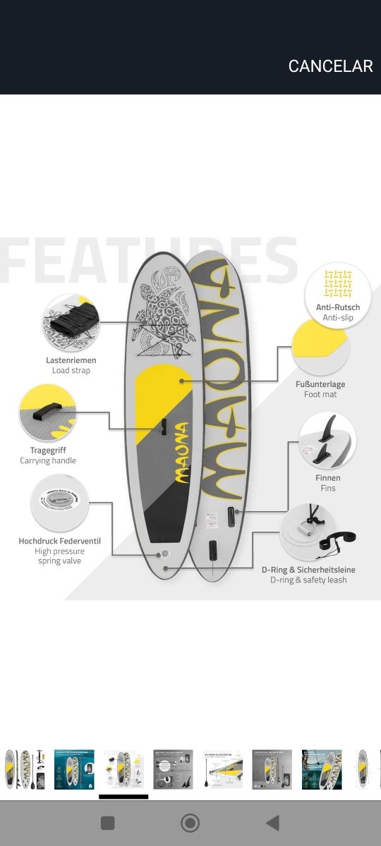 Detalles del productoTabla de paddle surf MAONA con diseño moderno y llamativo.