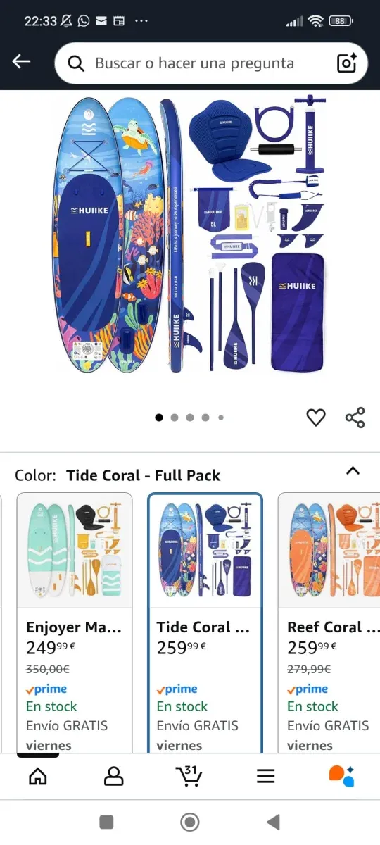 Detalles del productoTabla de paddle surf con un diseño vibrante de coral y tortugas marinas. Incluye todos los accesorios necesarios para disfrutar del deporte.