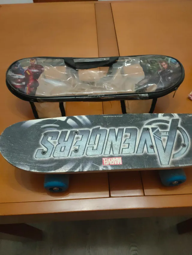 Tabla de skate con diseño de los Avengers. Incluye una funda para transportarla. - Diseño con personajes de Marvel. - Ruedas azules.