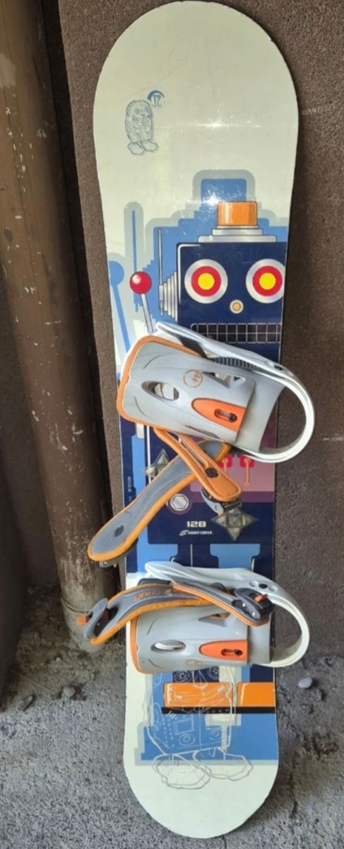 Tabla de snowboard con un divertido diseño de robot. De decatlon - Gráficos de robot en la parte superior. - Fijaciones incluidas.
