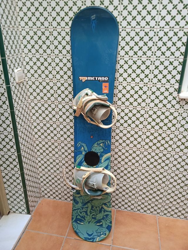 Detalles del productoTabla Santa Cruz 148 cm. La he usado bastante y tiene un roto, que no afecta para usarla. Las fijaciones tienen las cinchas rotas. Es una tabla para aprender. Por lo que cuesta un alquiler un par de dias, te llevas la tabla.