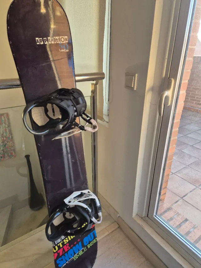 Detalles del productoTabla de snowboard Apparition con fijaciones.