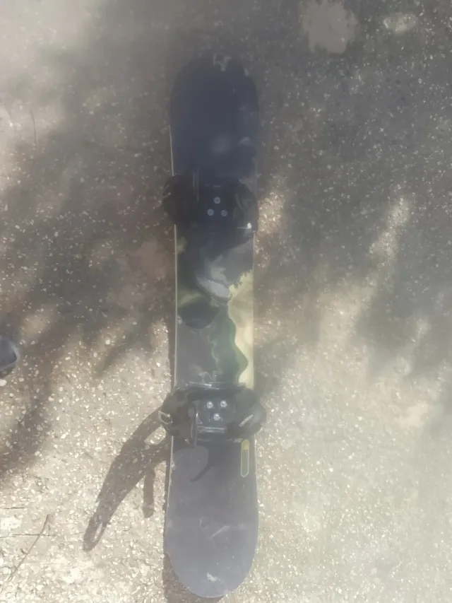 Detalles del productoTabla de snowboard Burton con fijaciones.