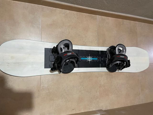 Tabla de snowboard con fijaciones incluidas. Lista para la montaña. -Medida tabla 138 cm - Diseño blanco y negro. - Fijaciones ajustables. -Botas numero 38