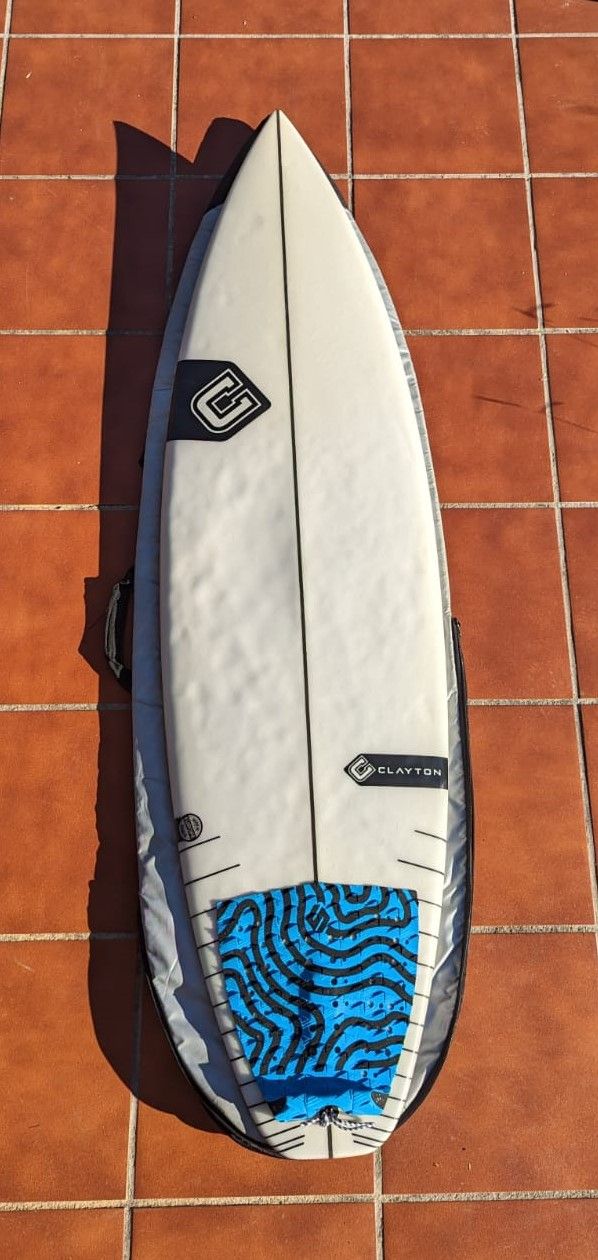Tabla Clayton usada pero en buen estado de 5'6" y 23 litros, con grip, funda shapers y quillas de carbono shapers, hay más información detallada de las características de la tabla en las fotos. Está usada, pero en muy buenas condiciones. Se vende porque se ha quedado pequeña. Es ideal para mejorar tu nivel surf o el kit perfecto para hacer un regalo muy completo para los amantes del surf.