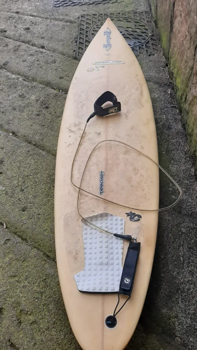 Tabla de surf de color beige con funda incluida. Ideal para disfrutar de las olas. - Tabla de surf de la marca NSP. - Incluye leash. - Quillas incluidas.