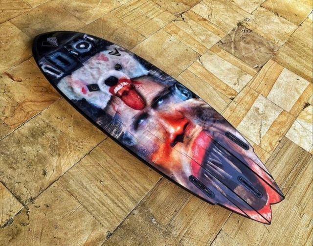 Detalles del productoTabla de surf DANI VILA SHAPES con acabo en carbono, diseño único y llamativo.