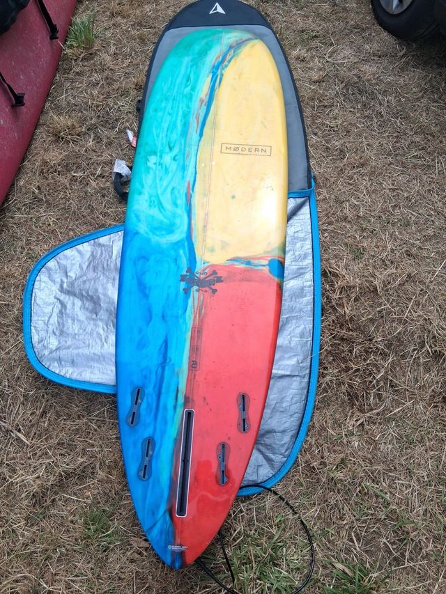 Detalles del productoTabla de surf evolutiva marca MODERN, de fibra de vidrio. 7 pies de largo, 52,6 Litros de volumen. Está en buen estado, tiene muy poco uso. Se vende con su funda y quillas.