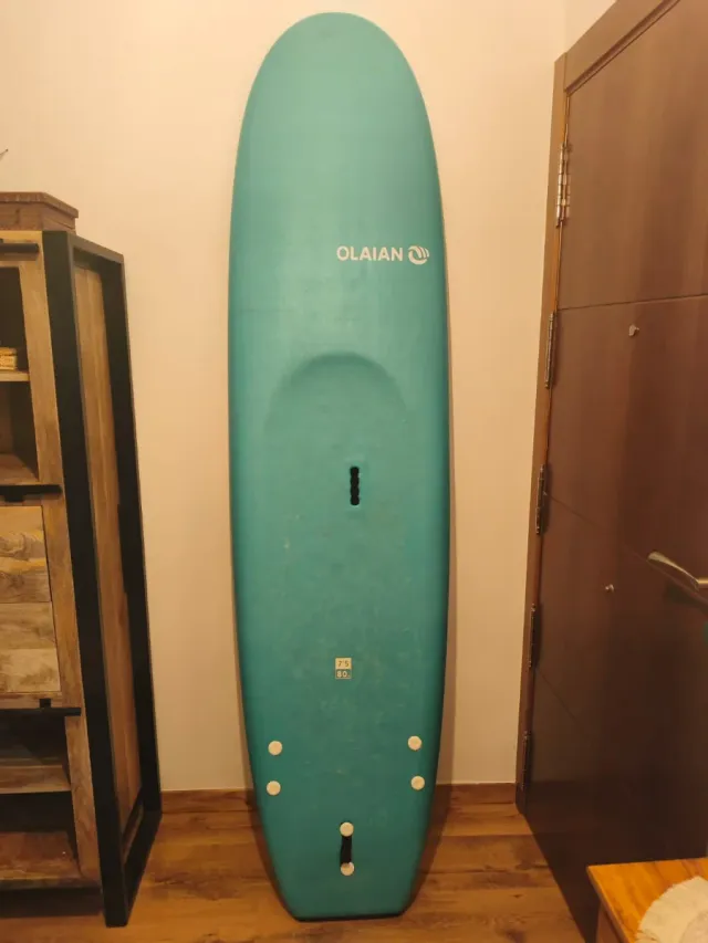 Tabla de surf OLAIAN de 7 pies, ideal para iniciarse en el surf. - Color verde azulado. - Diseño versátil para diferentes tipos de olas. - Marca OLAIAN.