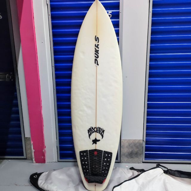 Tabla de surf Pukas de link. 35 litros. 6'0. Único dueño. Hecha para mi. Se vende sin quillas. - Diseño blanco. - Logo de Pukas en negro. - Logo de Mayhem