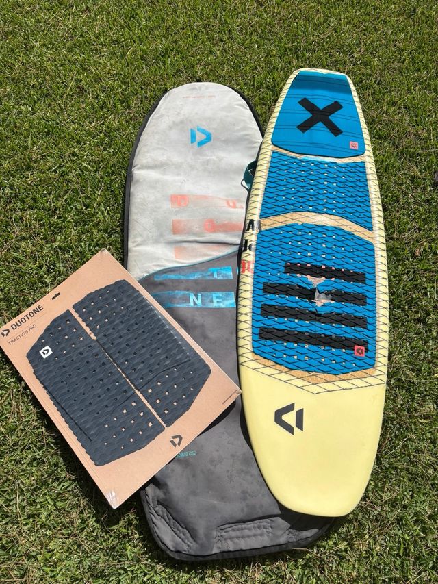 Detalles del productoTabla de kitesurf Duotone strapless en perfecto estado. Incluye funda con la cremallera rota pero con velcros para cerrar y almohadillas antideslizantes nuevas- Modelo Duotone PRO WHIP 5,1”