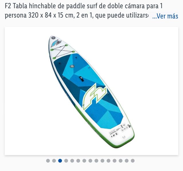 Detalles del productoTabla hinchable de paddle surf F2, ideal para una persona. Diseño azul y verde, en muy buen estado.
