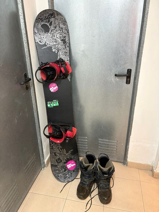 Se vende tabla de snowboard con fijaciones y botas. - Botas talla 44. Desgaste de años, pero perfecto para pasar una temporada y aprender sin alquilar equipo.