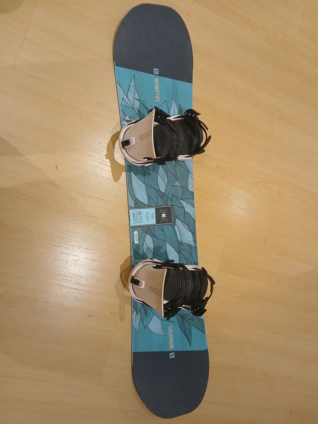 Tabla de snowboard Salomon de 135 cm con fijaciones Salomon incluidas. Ideal para disfrutar de la nieve. - Tabla Salomon de 135 cm. - Fijaciones Salomon.