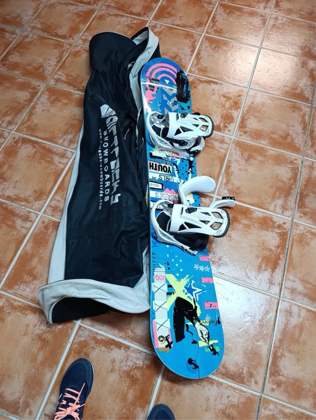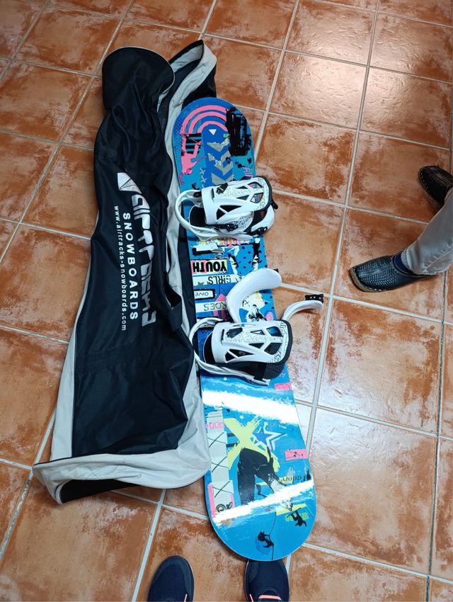 Detalles del productoTabla de snowboard con fijaciones y botas incluidas. Lista para la nieve.